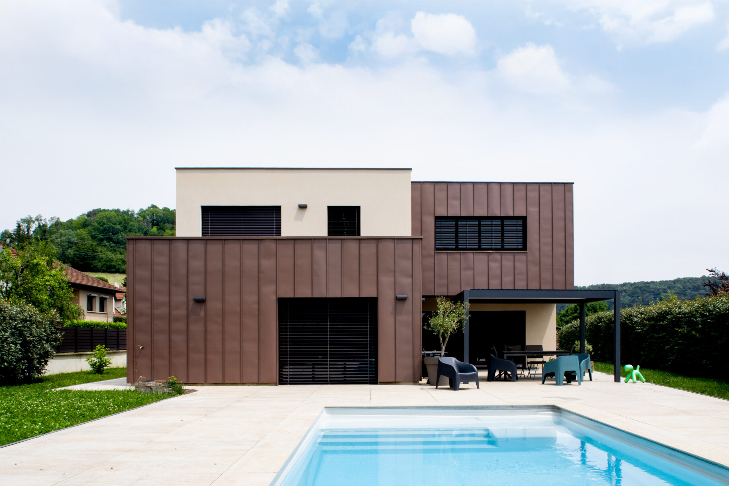 Programme : Extension bois : DOJO, Halle d’entrée, ascenseur, cuisine, mico-station, vestiaires et sanitaires.